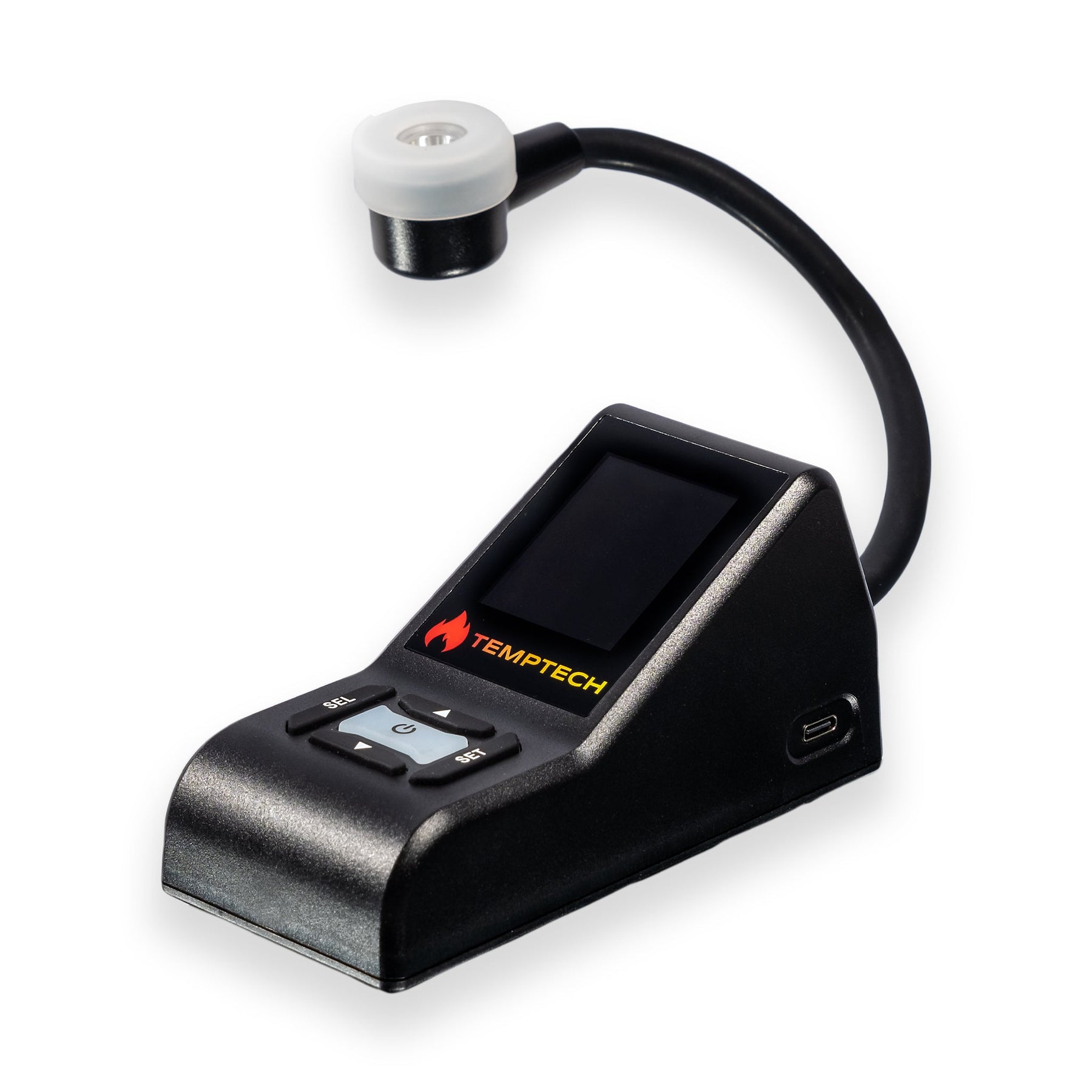 Experimente la precisión y la comodidad con el termómetro digital infrarrojo TempTech - FLEX. Diseñado para los aficionados al dabbing, este innovador termómetro cuenta con un brazo sensor ajustable con luces indicadoras y una gran pantalla a todo color. Sus alertas sonoras y visuales personalizables garantizan un control óptimo de la temperatura, haciendo que cada sesión sea perfecta. El termómetro digital infrarrojo FLEX se adapta a la mayoría de los rigs de dabbing e incluye diversas funciones avanzadas, como emisividad ajustable y apagado automático.
