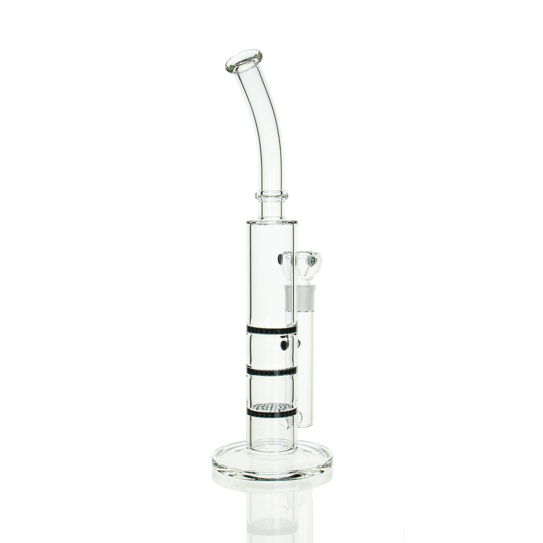 Mejora tu experiencia fumando con el tubo sin tallo de triple panal de abeja de 16" con cuello doblado en gris humo. ¡Pídelo ahora y disfruta de la combinación perfecta de estilo, rendimiento y durabilidad!
